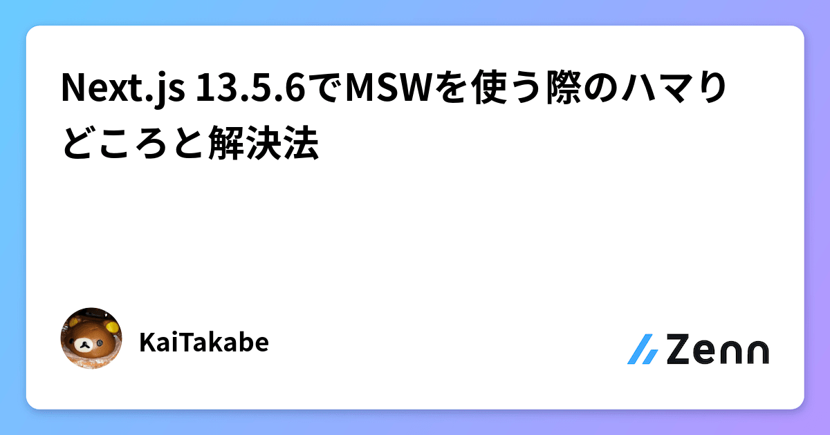 APIレスポンスをモックできるMSW(Mock Service Worker)ですが、Next.jsとは相性がよくないことで知られています。